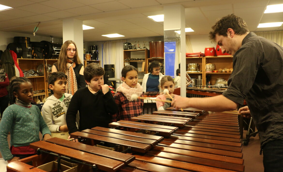 Le Conservatoire offre la possibilité à une classe d’école élémentaire de ponctuer son année scolaire de plusieurs temps d’échange autour de la musique avec une classe d’instrument du Conservatoire. Ce jumelage est construit en collaboration avec l’équipe enseignante de l’école.